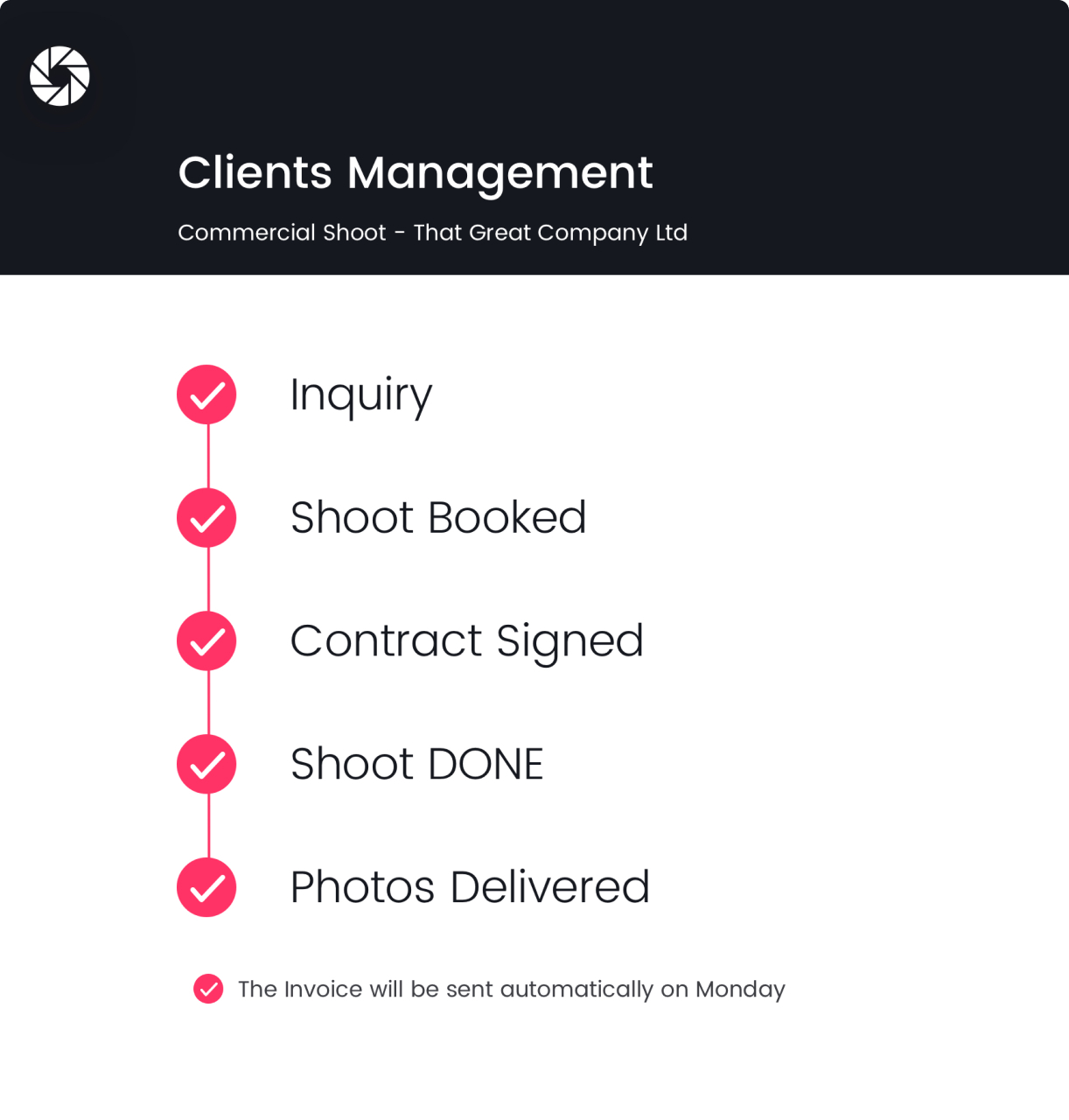Easily manage the accounting of your photography business with automatically generated invoices, sent to your clients according to your schedule.